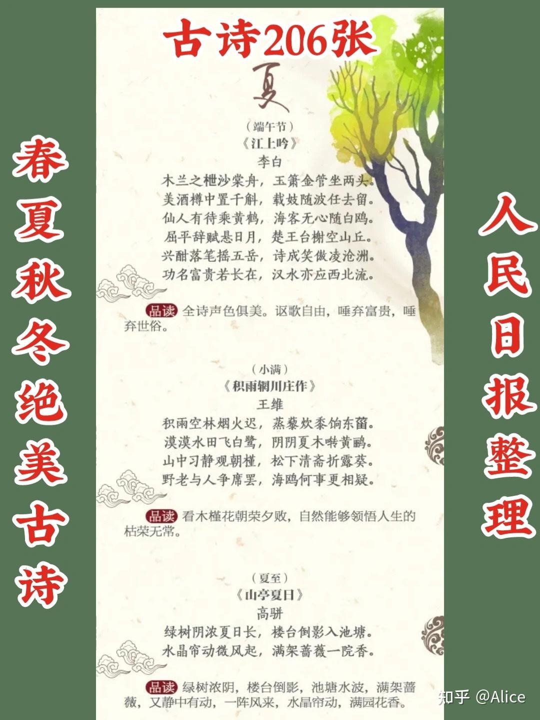 人民日报整理:206张必背古诗词卡片 百度网盘